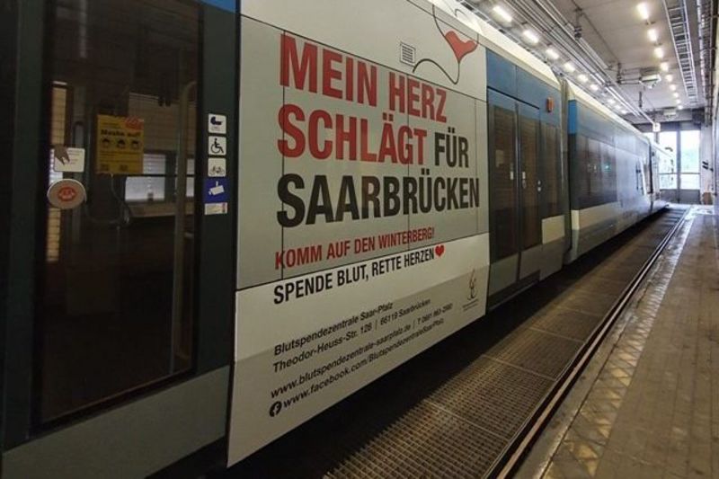 ...mit einem schönen Motiv auf einem Saarbahn-Zug.